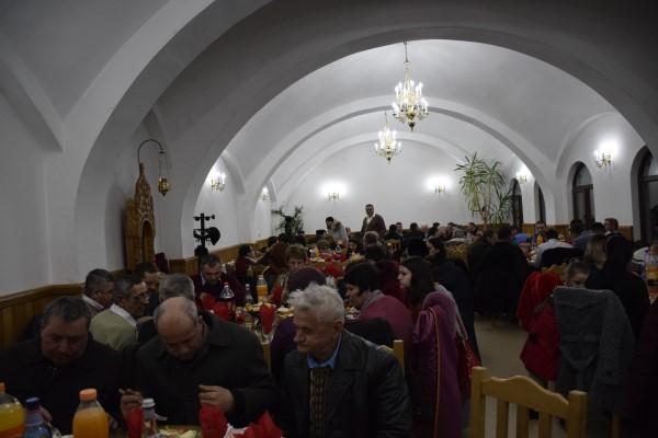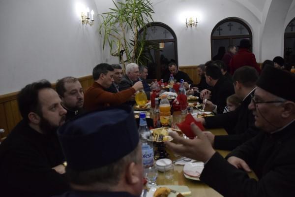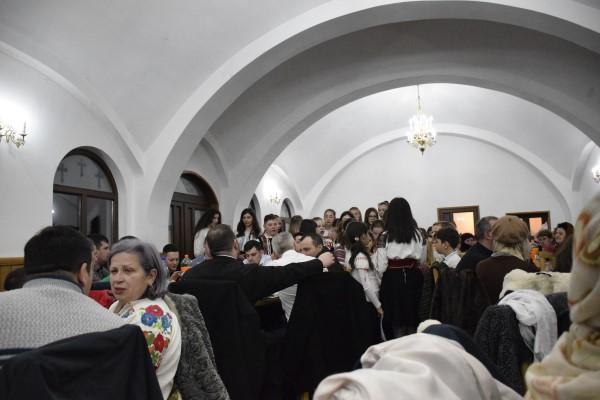 Slujba Vecerniei unită cu Litia a adus momente de înaltă trăire duhovnicească prin glasul celor 16 preoți participanți. Ca de fiecare dată, alături de cântăreții de la strană, corul parohiei noastre ”Copii ai aceluiași Dumnezeu” au încercat să înfrumusețeze slujba prin cântările lor iar mai apoi, la masă, prin cântecele patriotice au transmis multă emoție tuturor. Domnul primar al comunei Grumăzești și domnul primar din comuna noastră au felicitat osteneala părintelui nostru paroh, Gheorghe Trofin, precum și a copiilor parohiei ce au un model demn de urmat.